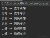 System.out.println(visitor.name + "→ 清洗车身");