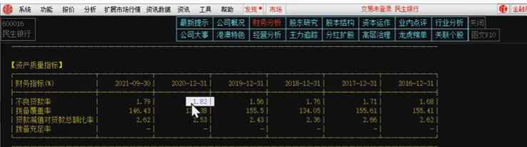 不良贷款率 1.5 到 1.86,拨备覆盖率 150 到 180,还好,但是如果拨备覆盖率下降,那么不正常。